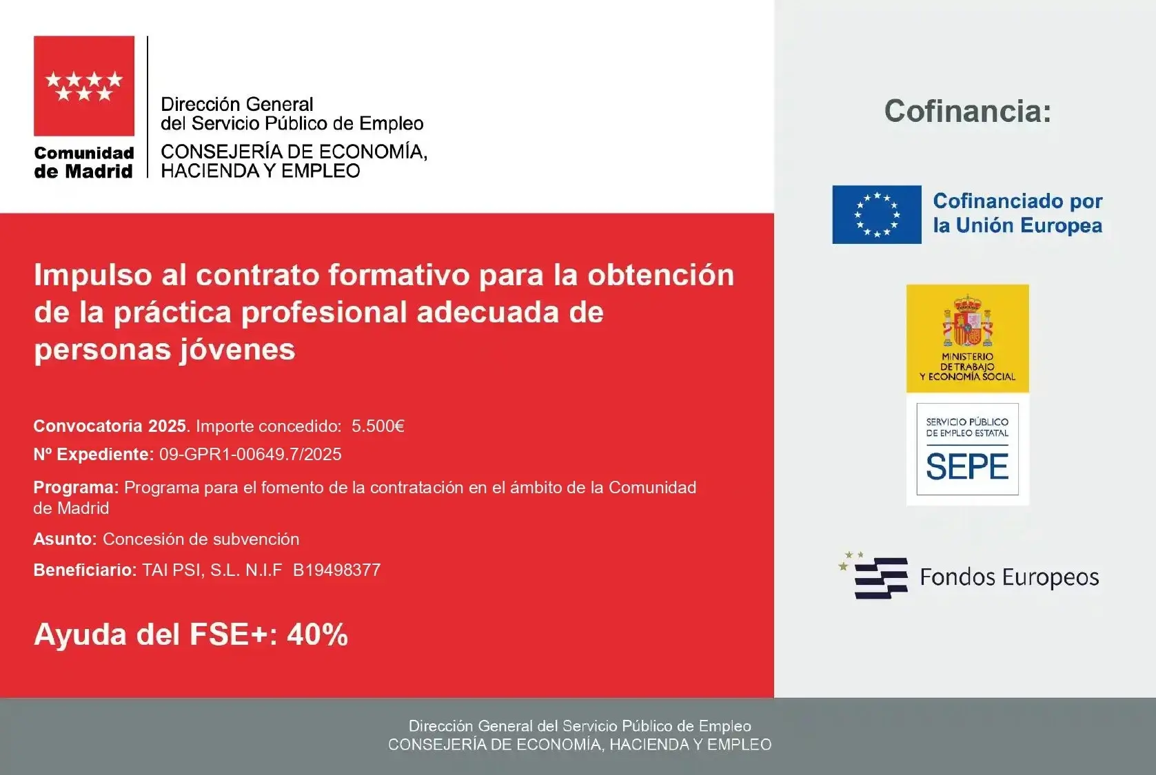 MIYU recibe una subvención del Programa de Fomento de la Contratación de la Comunidad de Madrid para impulsar el talento joven en el sector tecnológico.